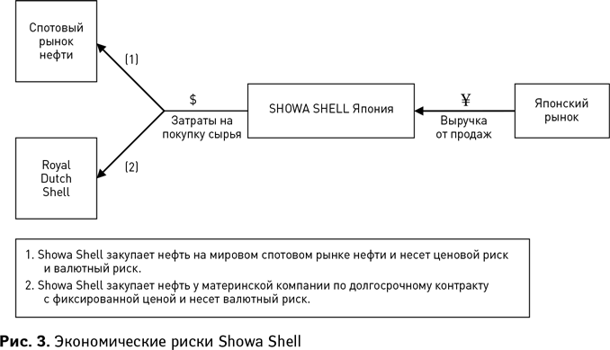 Чтобы понять, почему компания Showa Shell стремилась хеджировать риск укрепления доллара в связи с импортом нефти, полезно обрисовать экономику ее деятельности. В отличие от гигантских транснациональных компаний, таких как Exxon или Royal Dutch Shell, для которых характерна вертикальная интеграция от нефтеразведки и нефтедобычи до дистрибуции, японские нефтяные компании, в основном, занимаются переработкой и сбытом, в частности, перегонкой нефти внутри страны и дистрибуцией через принадлежащие компании сервисные станции. Такой бизнес практически полностью ориентирован на внутренний рынок, а внешнеэкономические операции сводятся к импорту нефтепродуктов. Таким образом, Showa Shell импортировала сырую нефть для производства бензина и других видов топлива и их реализации на розничном рынке. Поскольку цена на сырую нефть устанавливается в долларах, Showa Shell несла двойной риск: изменения цены на нефть и курса доллара к иене.