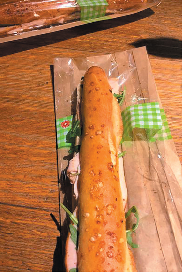 „Grüß Gott“, sagte ich zu einem älteren Mann hinter der Kasse, der mich freundlich anlächelte. „Ein Truthahn-Tomaten-Rucola-Sandwich für mich, bitte.“ Ich reichte ihm gleichzeitig mit dem Sandwich meine Kreditkarte über den Tresen. Das Brötchen des Sandwiches war recht schmal, dafür aber mit fast zwanzig Zentimetern recht lang. Wie eine Flöte sah es aus. Es fehlten nur die Löcher und das Mundstück zum Reinblasen.