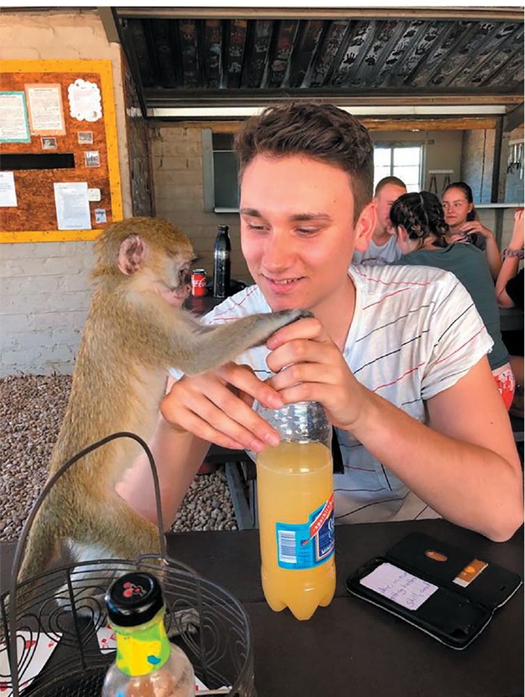 „Seine Mutter lebt irgendwo im Gehege bei den wilden Vervets“, sagte Anna kauend. „Er ist drei Monate alt und lebt seit seiner Geburt bei uns. Seine Mutter hat ihn verstoßen, deswegen kümmern wir uns um ihn.“