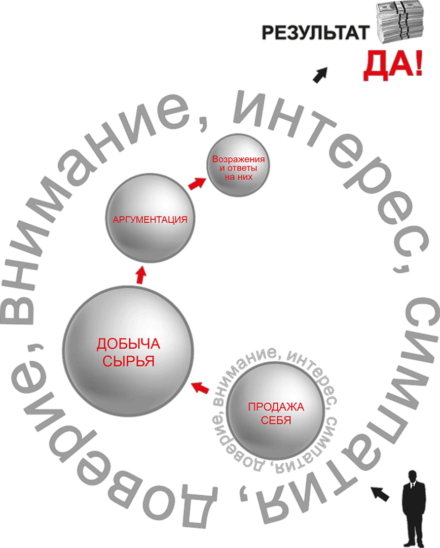 Результат – согласие клиента с тем, что нужно продавцу. Примеры результатов процесса продажи: клиент согласился на встречу, клиент согласился с ценой, клиент согласился со сроками, клиент подписал контракт, клиент заказал, клиент оплатил. . .