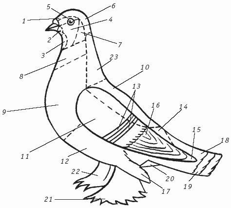 Несмотря на внешние различия пород голубей, внешнее строение у них одинаково (рис. 1).