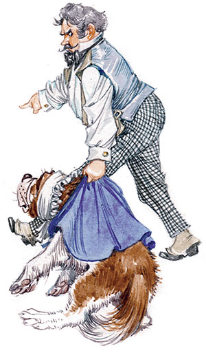 – Всё, всё! Прочь, твоё место во дворе! Там я тебя и привяжу сию минуту.