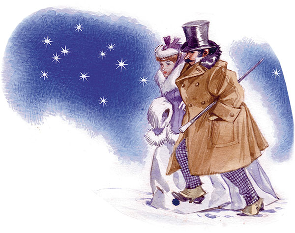 Дом номер 27 находился неподалёку, но шёл лёгкий снежок, и Дарлинги с осторожностью ступали по дороге, чтобы не испортить обувь. Улица была совершенно пустынна, и только с неба за ними наблюдали звёзды. Несмотря на свою красоту, эти небесные светила обречены лишь пассивно созерцать всё происходящее сверху. Это было их наказанием за что-то случившееся так давно, что никто уже и не помнил, за что. Старые звёзды смотрели на всё отрешённо и редко разговаривали (а общаются звёзды, перемигиваясь), но молодые проявляли ко всему большое любопытство. Питера они не особенно любили, поскольку он имел привычку, незаметно подкравшись сзади, пытаться их задуть, но сегодня им так хотелось поразвлечься, что они были целиком на его стороне и не могли дождаться, когда взрослые уйдут. Как только дверь дома номер 27 за мистером и миссис Дарлинг закрылась, на небе поднялась суматоха и самые маленькие звёзды Млечного Пути воскликнули: