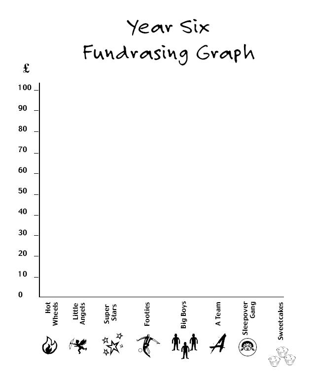“Year Six, I’ve made this graph,” she announced, holding up a huge sheet of coloured card, “to show the progress of your fundraising competition. (So the graph wasn’t for Maths! Phew!) “It has the name of every team in the class, and Mrs Poole informs me that the Cuddington Players will award a prize to the winning team.”
