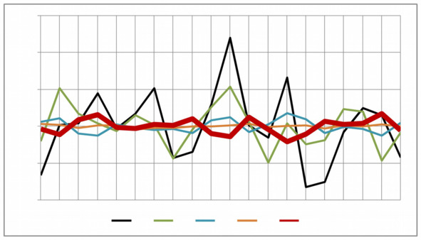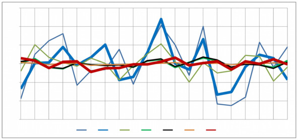 Рисунок 5.4. Взаимная динамика 6 z – изменчивостей, влияющих на