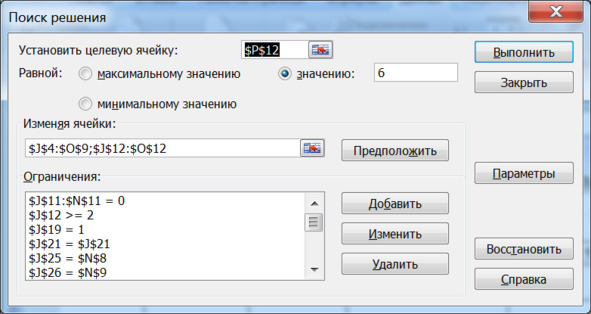 Рисунок 5.8. Окно надстройки «Поиск решения»