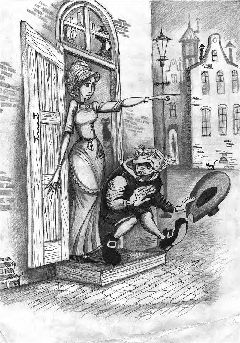 А в это время в лавку Иоганна постучали. Хелен открыла дверь и впустила небольшого человечка, богато одетого по последней моде.