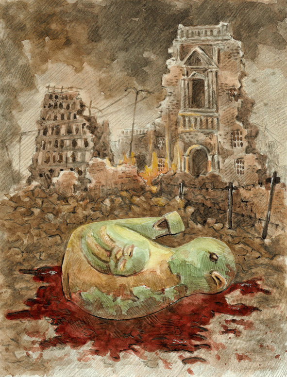 Миролюбие граждан Города не знает границ, но живя в осажденной крепости, они вынуждены пребывать в постоянной готовности к отпору. Бог войны всегда требовал поклонения и жертв – и ему молились истово. Проводили парады детских колясок, декорированных под военную технику былых времен (а в колясках ехали младенцы в крошечной военной форме). Организовывали школьные праздники, где шеренги детей нестройно маршировали с военно-патриотическими песнями под строгими взглядами орденоносных портретов. Те школьники, которых не отобрали в солдаты, наряду с обычными уроками каждую неделю учились бросать гранаты и собирать автомат – на всякий случай. Для жителей Города Бог войны назывался Миролюбием. И наверное, он с одобрением взирал на своих адептов.