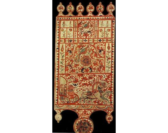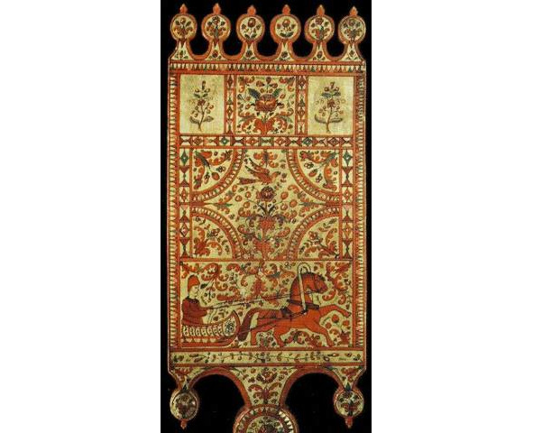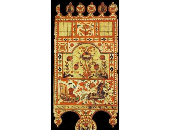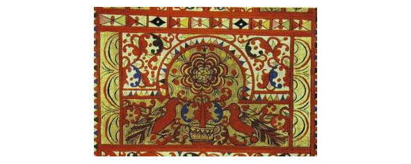 Кто изображался издревле в том месте, которое занял двуглавый орел? И тут мы вновь вспоминаем о древних изображениях богини-рожаницы. Не она, ли, дающая жизнь всему живому на земле, сохраненная памятью многих поколений, издревле почитаемая и увековеченная в вышивке на подолах рубах, концах полотенец и на головках кокошников северорусских женщин, находилась до XVII – начала XVIII в. в центре рассматриваемых нами композиций?