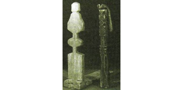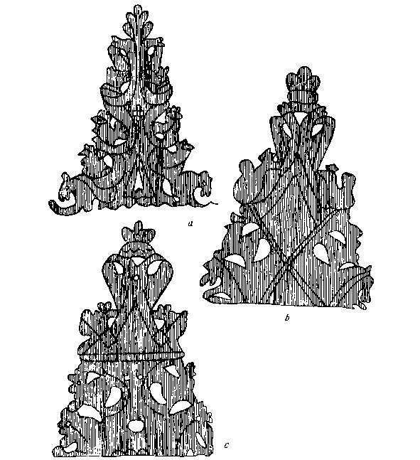 Еще нагляднее замену одной композиции другой, более поздней, можно проиллюстрировать на примере изменений орнаментики наверший ярославских теремковых прялок (рис. 3).