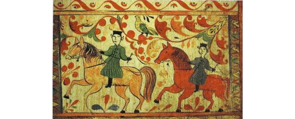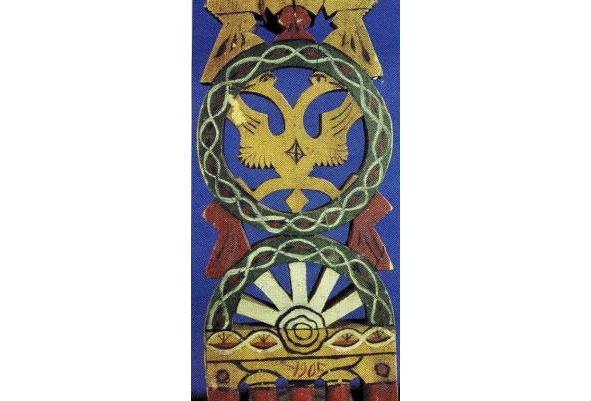 Новая форма – двуглавый орел – свободно и легко наслоилась на старую (архаичную), значение которой как благопожелания, надежного оберега еще не было утрачено, смысл же древней композиции во всех ее деталях начал забываться. Вероятно, изображение древней богини жизни – Рожаницы земледельцу X – XV вв. говорило значительно больше, нежели его далеким потомкам в XVII – XIX вв.