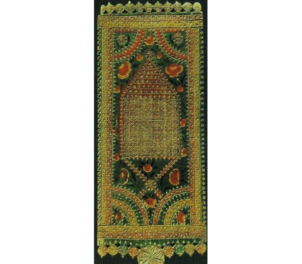 Однако значение этого божества, видимо, было еще достаточно велико и в позднее время, так как не везде и не всегда его полностью удаляют из композиции. Очень часто мы встречаем, как абсолютно верно заметил Г. П. Дурасов, двуглавого орла и женщину внутри него или над его головой. А в отдаленных от шумных дорог местах Вологодской и Архангельской областей мы и по сей день можем встретить в сундуках старушек полотенца, рубахи и головные уборы, где во всей красе изображена древняя языческая богиня жизни – Рожаница, совершающая великий акт творения всего сущего на земле.