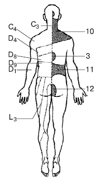 Прежде чем приступить к изучению массажных приемов и применению их на практике, нам необходимо вспомнить о сегментарном строении человека, проще говоря, о том, за какой участок тела отвечает определенный спинномозговой нерв.