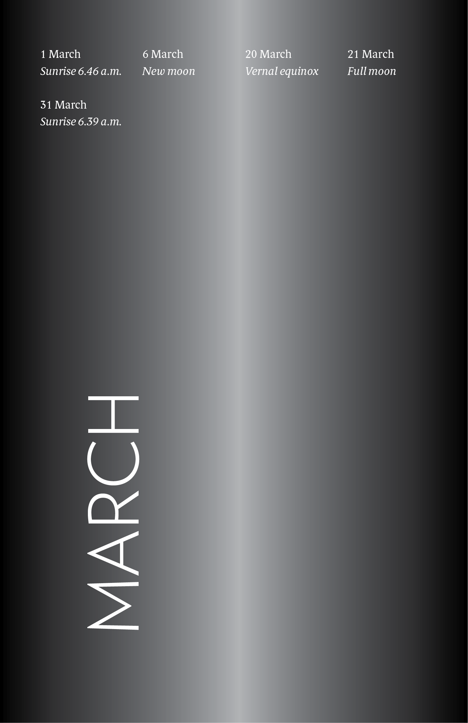 First day of meteorological spring. Sunrise calculated: 6.45 a.m. I read, I write, I make tea. By 5 a.m. the back-garden blackbird’s song is less shouty, more melodious. There are runs, there is sweetness. It feels tender, personal. I wonder if he can see me from my open window, face picked out in the screen light. It’s still too dark to see him. Maybe there is an appreciative female, maybe as yet there is only me. It is quiet, just my fingers quietly rat-tatting on the computer keyboard, him and his sweet song.