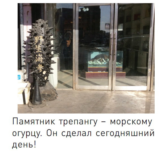 Памятник трепангу – морскому огурцу. Он сделал сегодняшний день! Интересно, что китайское название Владивостока – Хайшэньвэй () – означает как раз «Бухта трепанга».