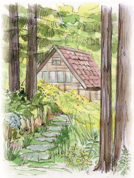 Щука с трудом уместилась в корзинке, которая оказалась за спиной у Мишутки, удочки подхватила Маруся, и два медведя вразвалочку начали взбираться по узенькой тропинке на высокий холм.
