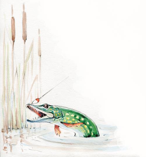 «Папу бы сюда – он бы мигом справился, а я и упустить могу», – мелькали в медвежьей голове обрывки мыслей, пока Мишутка то отпускал немного леску, как бы давая некоторую свободу рыбе, глубоко заглотившей крючок с наживкой, то подтягивал её всё ближе и ближе к берегу. Сколько шла эта борьба, он впоследствии не мог вспомнить, но как бы то ни было, огромная щука была выведена к берегу и её можно было подхватить подсачником. Только вот беда – тот упал, и Мишутка никак не мог до него дотянуться.