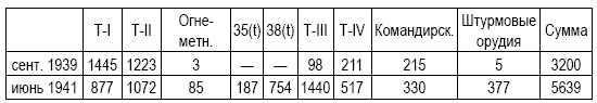 Данные по германским и чешским танкам мистер Резун почерпнул в исследовании генерал-майора германской армии Б. Мюллер-Гиллебранда «Сухопутная армия Германии 1933–1945 годов». Воспроизведем из вышеуказанной книги таблицу по наличию танков в германской армии на 1 сентября 1939 года, а также на 1 июня 1941 года.