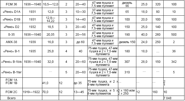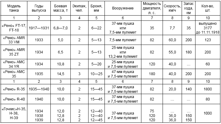 Таблица 2. Количество танков, выпущенных на заводах Франции в 1917–1940 годах
