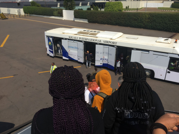 Мы прибыли в столицу Руанды – Кигали. Несколько слов об этой стране. Руанда – она тем хороша, что это одна из самых богатых стран Африки. И у них там всё как бы хорошо: у них новые дороги, у них красивые здания. В отличии от многих африканских стран по населению очень маленькая Руанда. Во всей стране около 1 млн 300 тыс. жителей живёт, и территория тоже небольшая. Руанда расположена в горной местности. Основной язык этой страны – французский, и поэтому на французском нам объявляли по прилету, что мы приземлились в Кигали.