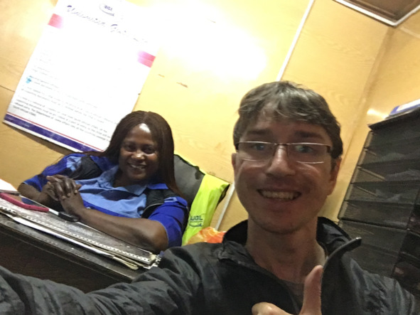 Я, поняв всю сложность маршрута, спросил: «можете меня проводить?» И этот африканец, который меня привел в этот офис, согласился меня проводить. И мы пошли по дороге. Он спрашивал всех сотрудников аэропорта, которые нам попадались навстречу или садились в машину на парковке, едут ли они в центр. Но, видимо, никто в центр не собирался.