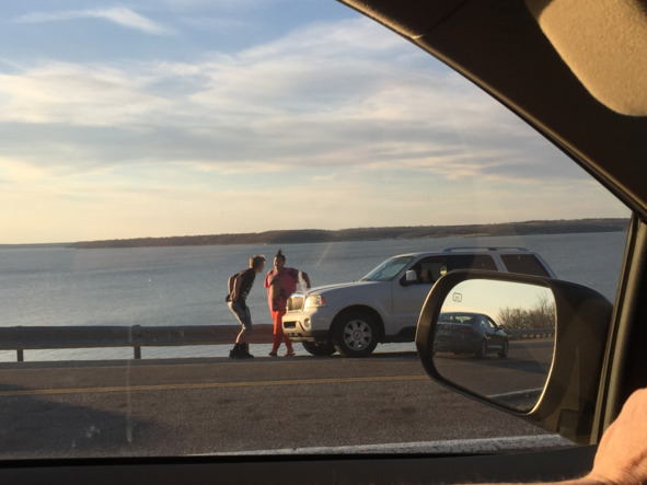 Затем мы поехали в сторону Лоуренса, и Лэн спросил меня, бывал ли я на местном озере. Я сказал, что нет и с радостью бы туда поехал. Чтобы утолить хотя бы чуть-чуть голод он угостил меня каким-то черносливом в шоколаде, который в бардачке под подкладкой перед коробкой передач.