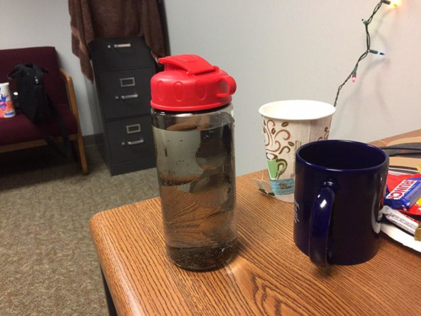 Только что вернулся с фильма Федерико Фелини «Директорские заметки». Местами очень экспрессивное кино, местами непонятное – но на то он и Фелини, чтобы каждый искал в его произведениях свой смысл. И вот, после пива и вина, выпитого на сессии по печатным книгам в Библиотеке Ватсона, очень хочется выпить просто воды. А в офисе, где я помню, как на столе оставил брендированную бутылку с водой BSA, ее нет. Везде посмотрел – в портфеле, на полках, в ящиках, на полу – нету. А потом прошел к туалету, и нашел ее на полке фонтана с питьевой водой.