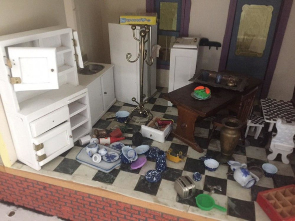 Надо сказать, что при ближайшем рассмотрении оно оказалось не столь богатым, но любопытным. В большом зале около окна стоял большой старинный кукольный домик в три этажа с открытыми комнатами и какими-то человечками. Все было сделано так, как взаправду. Вообще, в Америке это популярная тема. Я уже не раз видел такие в музеях – кажется, в Миннеаполисе.