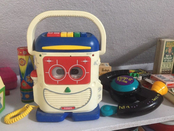 Интересен был и старый аудиоплейер, кассетный. Он был сделан под детскую игрушку, напоминающую миньона. Интересная вещь! Раритет! Скорее всего из конца 80-х или начала 90-х годов.