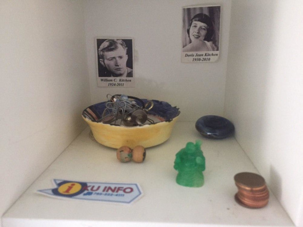 Полочки на письменном столе напомнили тоже чем-то этот кукольный домик. В каждом из них лежало что-то такое женское (сразу вспомнил о Пушкаревой и о возможности написать об этом статью): расческа (как из фильма Титаник), какие-то шкатулочки, нитки, брошки. На одной из полок наклеены портреты Мерелин Монро и Джона Кеннеди. Вот они, 60-е! – подумал я. Кто только в этом доме и не жил. И наклеены они были словно большие постеры в комнате на стене.