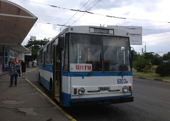 На выходе из терминала нужно пройти чуть вперёд до троллейбусной остановки, и Вы сразу увидите эти знаменитые междугородние троллейбусы, которые соединяют Симферополь с Ялтой. Прекрасно, не правда ли, прилететь и тут же доехать до своего отеля, не сделав ни одной пересадки!