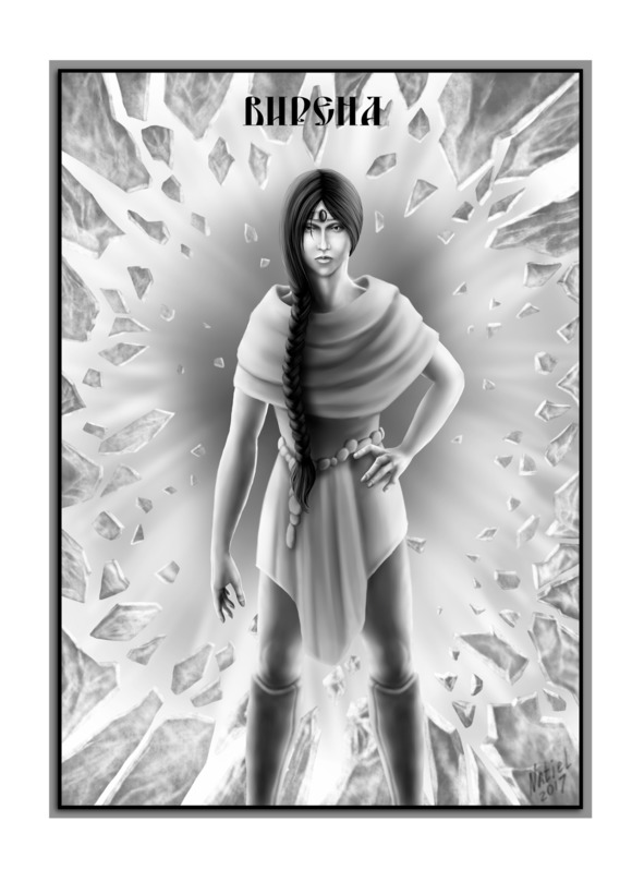 Не успели закончиться эти трогательные приветствия, как позади сидящих правителей появилась густая серая дымка. Рассеиваясь, она обрела очертания арки, проход которой был запечатан мутным стеклом. Вдруг оно задрожало, и по нему пошли широкие трещины. Казалось, что его рушили изнутри, ударяя тяжёлым тараном. Ещё мгновение, и завеса рассыпалась, освобождая проход, четвёртой старейшине, хранительнице гор и пещер. Её звали . Вирена