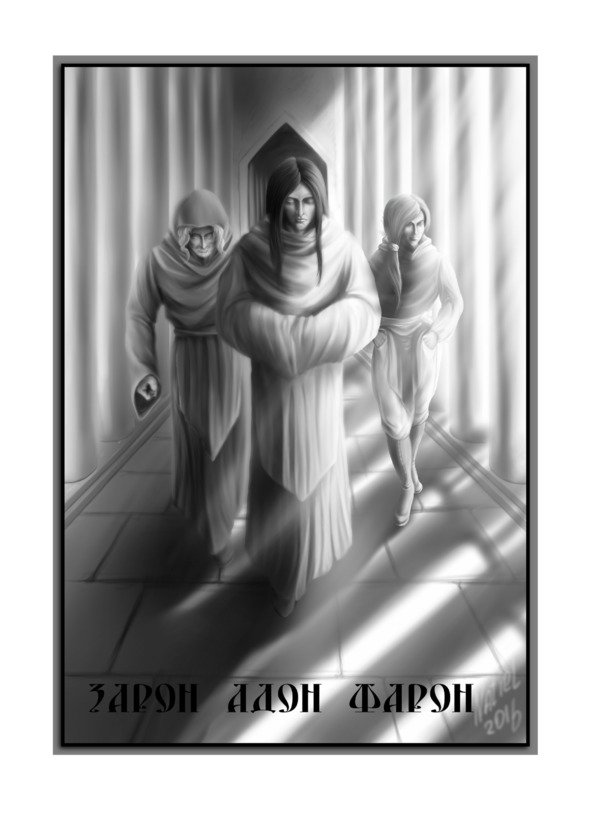 На Зароне был надет балахон серебряного цвета. У него, как и у Адона, сзади имелась вышитая руна. Этот магический знак означал «Мудрость». Под капюшоном, надетым на голову, видны вьющиеся светлые волосы, а его голубые глаза вселяли уверенность и бесстрашие перед любыми преградами. Возраст Зарона был чуть старше, чем у владыки Адона, но это его вовсе не портило, а наоборот, придавало необычный шарм.
