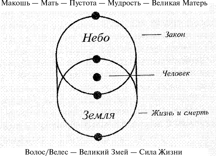 Василиса Премудрая буквально переводится как Царица/Властительница Сверхмудрости, и она напрямую связана с Велесом, как показывает её имя. Василисе Премудрой соответствует Макошь – Мать-пустота (см. рис. 1). Видите, как на рисунке Макошь соприкасается и сливается в единое целое с Волосом/Велесом?