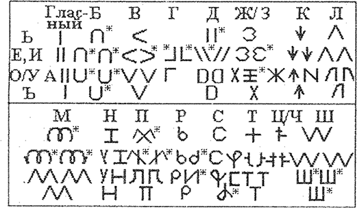 Рис. 2. Древнерусская руница – слоговая азбука