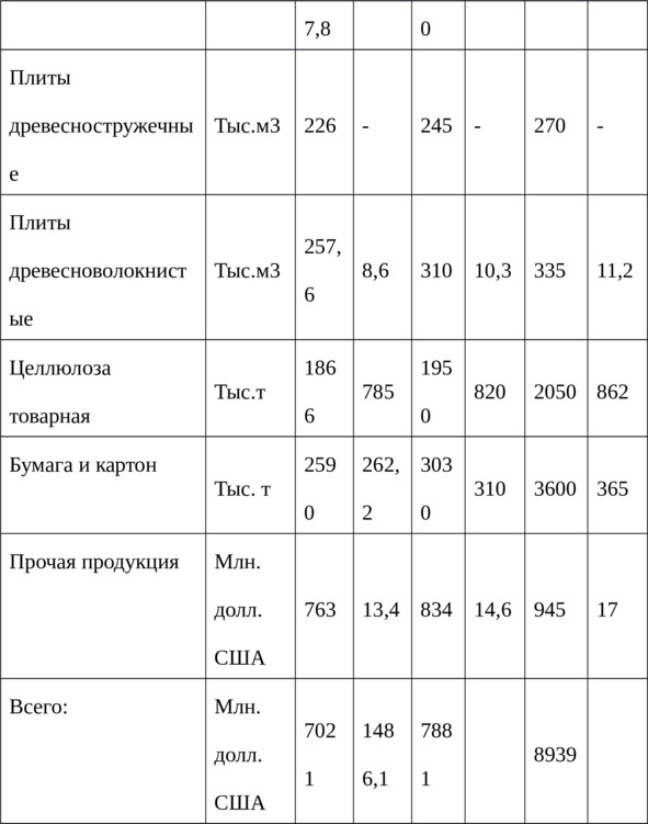 Темпы роста производства в лесной, деревообрабатывающей и целлюлозно-бумажной промышленности будут отставать от темпов роста производства в промышленности и от темпов роста валового внутреннего продукта в среднем на уровне отставания за 2002 -2004 год, т.е. на 3—4 процентных пункта.