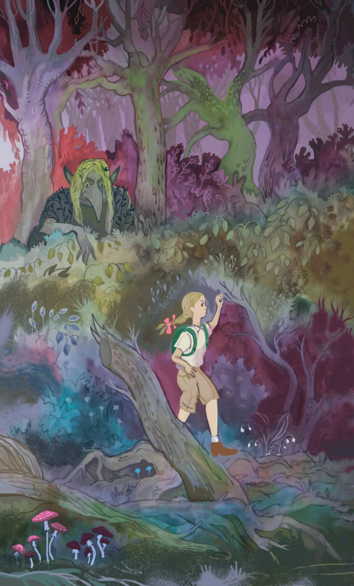Лес был всё ближе и ближе. Путь Уле преградили старые поваленные деревья. Их корявые ветки, как щупальца, пытались зацепиться за одежду и не пропустить девочку в лес. Но Уля решительно вырвалась и стала быстро перебираться через толстые стволы деревьев.
