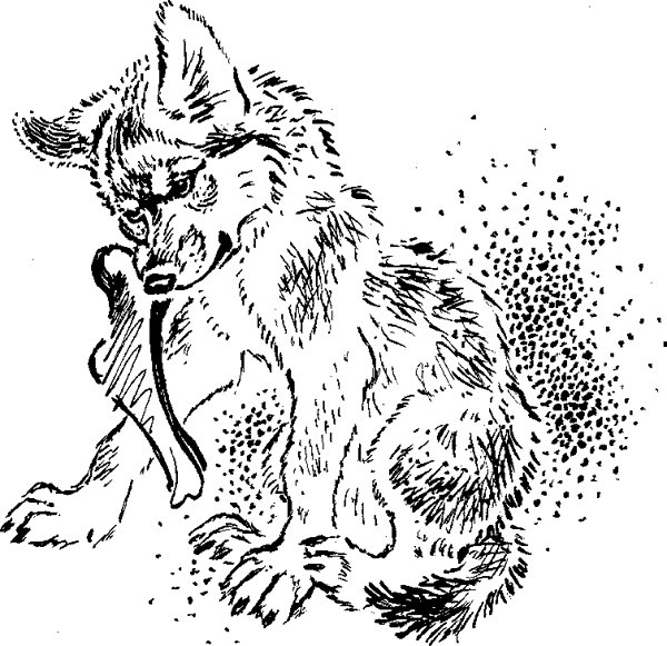 Собачка у меня была рыженькая, маленькая. Она была потайного и ехидного характера. Звали ее Плишка. Плишка была чуть побольше волчонка. Волчонок, как ее увидал, побежал к ней, хотел поиграть, повозиться. А Плишка ощетинилась, оскалилась, как огрызнется: