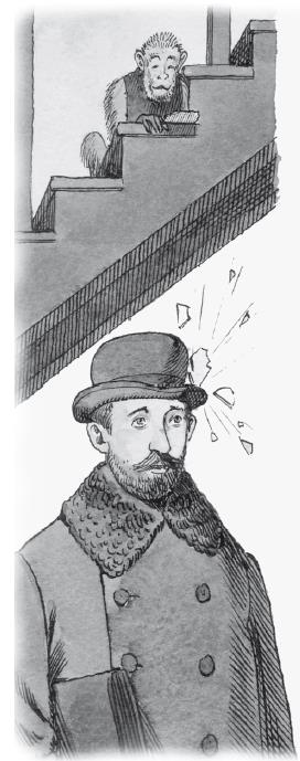 Вот отец идёт утром на службу. Почистился, надел шляпу, спускается по лестнице. Хлоп! Штукатурка падает. Отец остановился, стряхнул со шляпы. Глянул вверх – никого. Только пошёл – хлоп, опять кусок извёстки прямо на голову. Что такое?