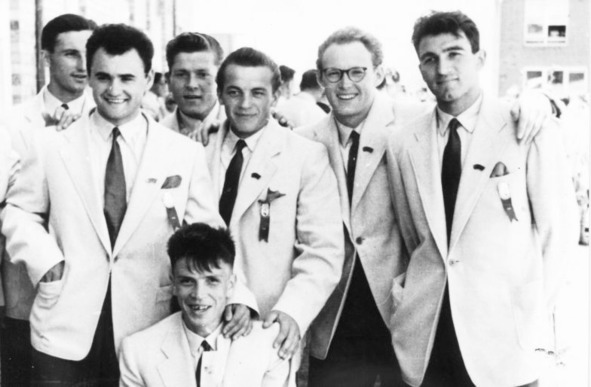 Борис Савостин (слева) вместе с товарищами по сборной СССР на Олимпиаде-56 © Архив Эдуарда Гусева