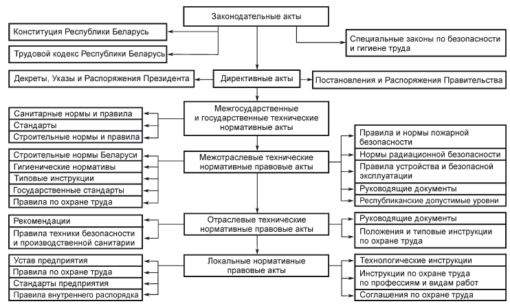 В республике создана достаточно стройная иерархическая система нормативного правового обеспечения безопасности и гигиены труда, которая ориентировочно может быть представлена в виде схемы (рис. 1.1).