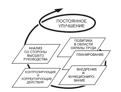 В 2005 г. в республике впервые введены в действие стандарты СТБ 18001-2005 «Системы управления охраной труда. Общие требования» и СТБ 18002-2005 «Системы управления охраной труда. Руководство по применению государственного стандарта Республики Беларусь “Системы управления охраной труда. Общие требования”», содержание которых гармонизировано с международными и национальными стандартами. В 2009 г. вместо СТБ 18001-2005 принят стандарт СТБ 18001-2009 «Системы управления охраной труда. Требования». В соответствии с этими документами модель СУОТ представлена на рис. 2.1.