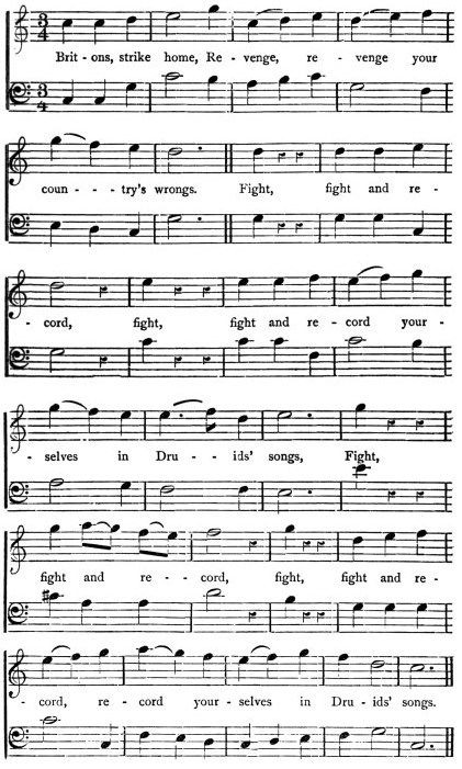 INVASION, continued, – ‘BRITONS, STRIKE HOME’ – BONAPARTE’S WILLAt this time much use was made of the phrase ‘Britons, strike home!’ which first appears in an adaptation of Beaumont and Fletcher’s play of ‘Bonduca,’ or Boadicea – which was set to music by Henry Purcell in 1695. The few words are not in the original drama, but are interpolated with other songs, and form a solo and chorus.