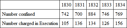 The remaining Notices of the Fleet must be taken as they come, as far as possible, chronologically – and first of all let us look at the enormous quantity of people who were imprisoned for debt. In the Mirror, No. 615, vol. xxii. July 20, 1833, is a cutting from the Times: "By the return of persons imprisoned for debt in 1832, in England and Wales, just printed by order of the House of Commons, it appears that the gross number was 16,470: of whom maintained themselves 4,093, so that three fourths of the whole were too poor to provide themselves with bread."