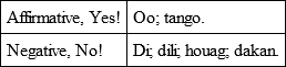 Though the poverty of the language is remarkable, yet a great variety of designations is found for certain objects. Rice, for example, in the husk is palay (Malay, padi); before transplanting, botobor; when beginning to sprout, buticas; when the ear appears, basag; in a more advanced stage, maymota; when fully ripe in ear, boñgana; when borne down by the wind or the weight of the ear, dayapa; early rice, cavato; sticky rice, lagquitan; ill-formed in the grain, popong; rice cleaned but not separated from the husks, loba; clean rice, bigas; waste rice, binlor; ground rice, digas; roasted rice, binusa; roasted to appear like flowers, binuladac; rice paste, pilipig; fricasseed rice, sinaing; another sort of prepared rice, soman. There are no less than nineteen words for varieties of the same object. And so with verbs: – To tie, tali; to tie round, lingquis; to tie a belt, babat; to tie the hands, gapus; to tie a person by the neck, tobong; to tie with a noose, hasohaso; to tie round a jar, baat; to tie up a corpse, balacas; to tie the mouth of a purse, pogong; to tie up a basket, bilit; to tie two sticks together, pangcol; to tie up a door, gacot; to tie up a bundle (as of sticks), bigquis; to tie up sheaves of grain, tangcas; to tie up a living creature, niquit; to tie the planks of a floor together, gilaguir; a temporary tie, balaguir; to tie many times round with a knot, balaguil; tight tie, yaguis; to tie bamboos, dalin; to tie up an article lent, pañgayla. Of these twenty-one verbs the root of scarcely any is traceable to any noun substantive. For rice there are no less than sixty-five words in Bisayan; for bamboo, twenty.