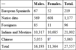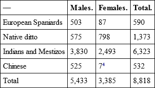 In 1855 the Captain-General (Crespo) caused sundry statistical returns to be published, which throw much light upon the social condition of the Philippine Islands, and afford such valuable materials for comparison with the official data of other countries, that I shall extract from them various results which appear worthy of attention.