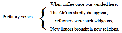 On the Pot-Poet he has a quotation from Whimzies, a new cast of Characters, 8vo, Lond., 1633, an illustration of the "strange monster out of Germany." "Nor comes his invention farre short of his imagination: for want of truer relations, for a neede he can find a Sussex dragone, some sea or Inland monster, drawn out by some Shoe Lane man in a gorgon-like feature, to enforce more horror in the beholder."