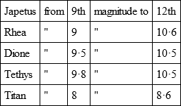 The French astronomer, M. Lucien Rudaux, finds the following variation in the light of the satellites of Saturn: —