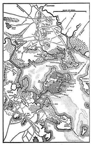 The fight at Moore’s Creek, Feb. 27, 1776But North Carolina had its minute-men as well as Massachusetts, and no sooner was this movement perceived than Colonel Richard Caswell, with 1,000 militia, took up a strong position at the bridge over Moore’s Creek, which Macdonald was about to pass on his way to the coast. After a sharp fight of a half hour’s duration the Scots were seized with panic, and were utterly routed. Nine hundred prisoners, 2,000 stand of arms, and £15,000 in gold were the trophies of Caswell’s victory. The Scottish commander and his kinsman, the husband of Flora Macdonald, were taken and lodged in jail, and thus ended the sway of George III. over North Carolina. The effect of the victory was as contagious as that of Lexington had been in New England. Within ten days 10,000 militia were ready to withstand the enemy, so that Clinton, on his arrival, decided not to land, and stayed cruising about Albemarle Sound, waiting for the fleet under Parker, which did not appear on the scene until May.