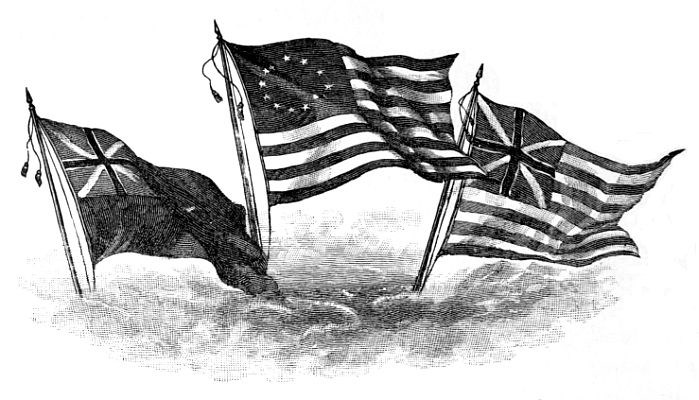 A provisional flagThe incongruousness of the present situation was typified by the flag that Washington flung to the breeze on New Year’s Day at Cambridge, which was made up of thirteen stripes, to represent the United Colonies, but retained the British crosses in the corner. Thus far, said Benjamin Harrison, they had contrived to “hobble along under a fatal attachment to Great Britain,” but the time had come when one must consider the welfare of one’s own country first of all. As Samuel Adams said, their petitions had not been heard, and yet had been answered by armies and fleets, and by myrmidons hired from abroad.